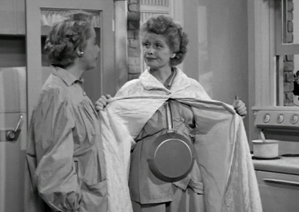 Hand in hand with having confidence – or not having it – is the discomfort in accepting a compliment. Every time someone says something to flatter me I squirm and shake my head denying any truth in their words. It is impossible to accept a compliment of any sort. Not that they come often but whenever someone shoots one at me I bob and weave like Lucille Ball who wore a frying pan to avoid being a standing target.